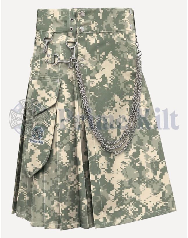 Stand out from the crowd with the ACU Camo Kilt, where classic Highland tradition meets modern, tactical design. Inspired by the Army Combat Uniform (ACU) print, this kilt brings together durability and a rugged look you can rely on. It’s made for outdoor adventures, festivals, hiking, or daily wear. The ACU camouflage keeps you ready for anything, while the roomy fit ensures all-day comfort. This men's camouflage kilt with cargo pockets is not only a bold fashion choice—it's also a practical piece built tough for real-life use.