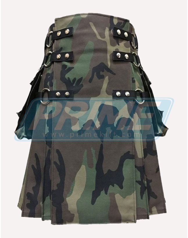 Transform your look with the Gothic Kilt in stunning woodland camouflage. This rugged, stylish kilt blends comfort and individuality, perfect for concerts, festivals, or outdoor adventures. Enjoy durable fabric, spacious pockets, and a secure fit. Stand out with a unique edge and embrace your bold style today!